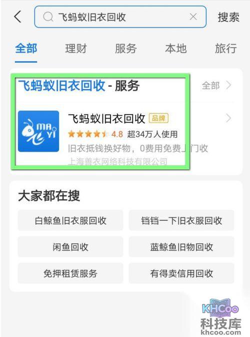 2、搜索飞蚂蚁旧衣服 回收 服务。