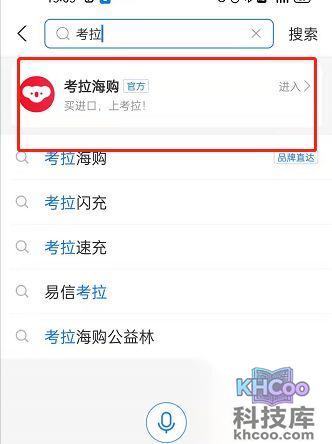 1、打开支付宝APP,在首页 搜索 【考拉海购】进入。