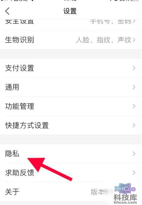 2、在“设置”界面中,点击“隐私”选项