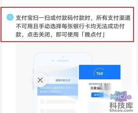 4、第四步开通晚点付之后,我们使用支付宝扫一扫或者付款码所有支付渠道不可用的时候,可以使用晚点付