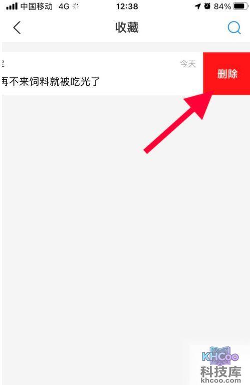4、如果想要删除收藏,那么按住收藏的项,然后向左滑动之后,出现如下图所示的删除图标,点击“删除”