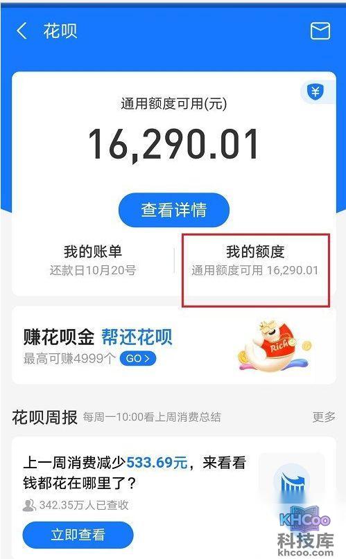 2、第二步进去花呗首页之后,点击我的额度