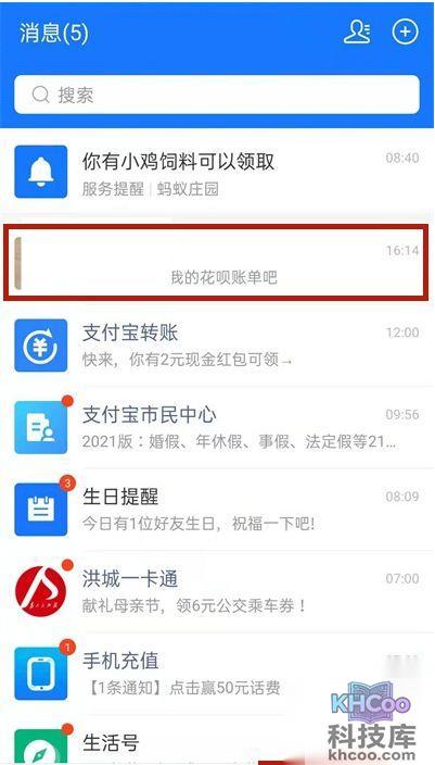 1、打开支付宝,点击右下角消息,点击花呗账单消息。