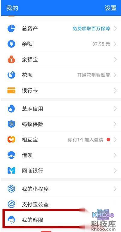 1、在打开支付宝,点击“我的”,下滑至底部,点击【我的客服】。