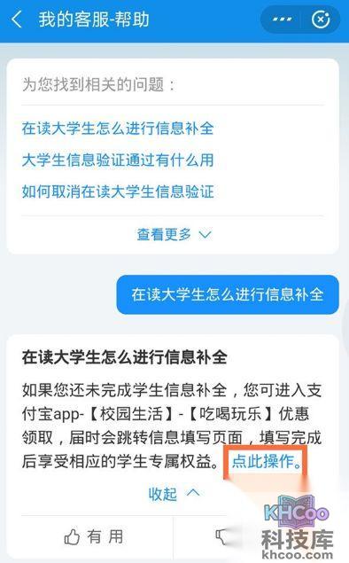 3、输入“在读大学生怎么进行信息补全”,点击【点此操作】按钮。