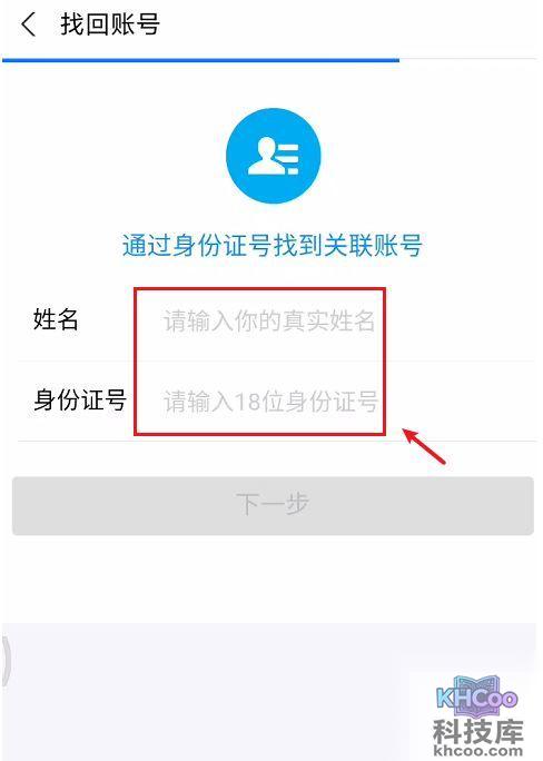 5、随后我们打开找回账户页面里,输入身份证号信息等。