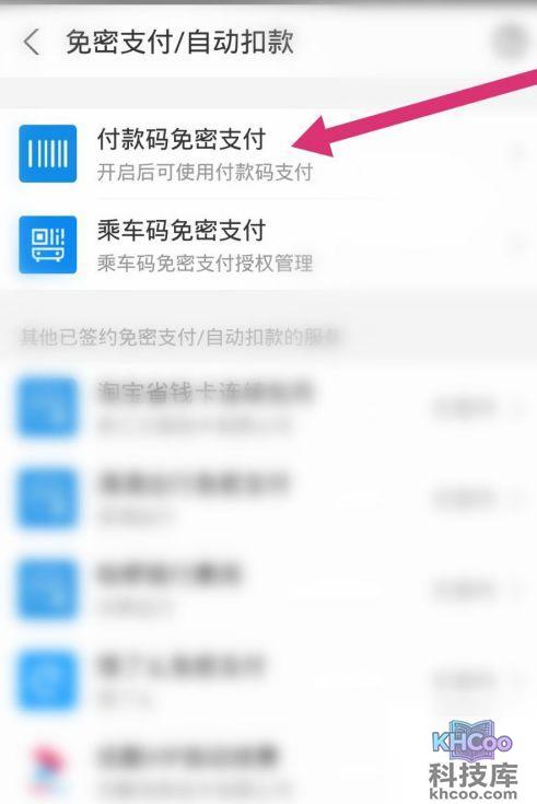 6、然后点击付款码免密支付