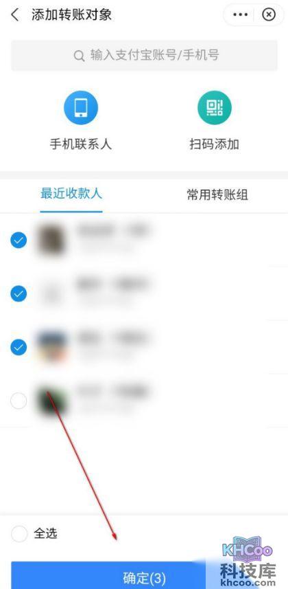 5、选择要转账的人群,点击确定。输入金额即可完成。