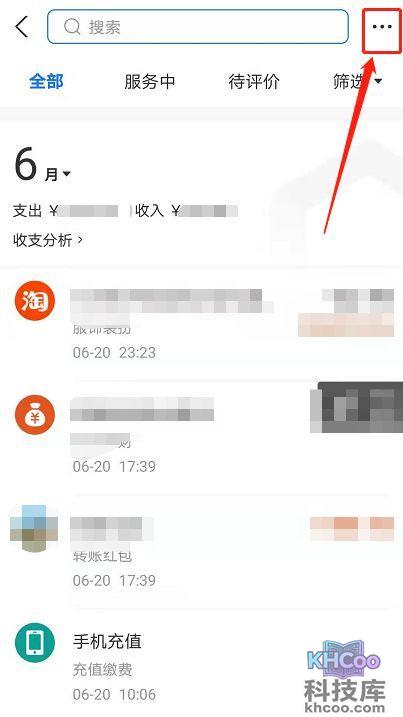 2、在此处用户们可以看到自己的所有收支信息,点击右上角 【...】 。