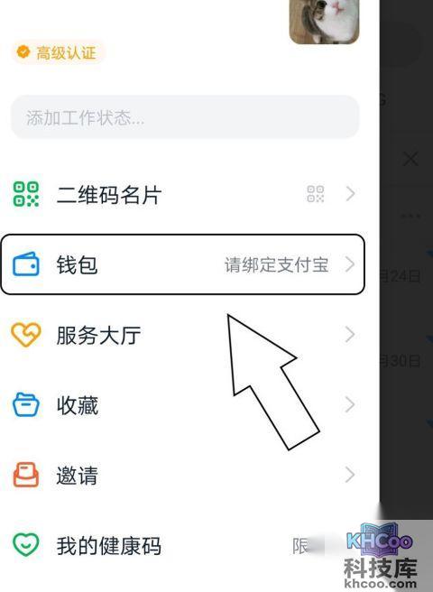 2、左侧弹出个人资料的功能栏,选择钱包。
