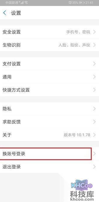 3、在设置页面点击打开“换账号登录”。
