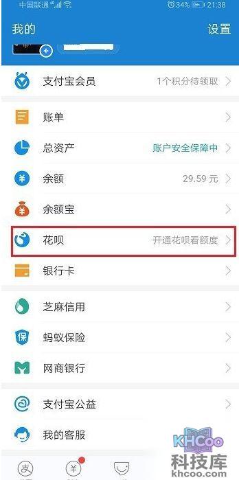 1、点击打开支付宝的花呗页面,我们可以查看我们的花呗额度。