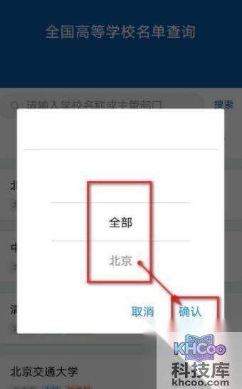 8、点击“普通高等学校”,可选择“普通高等学校”或“成人高等学校”,点击“确认”。