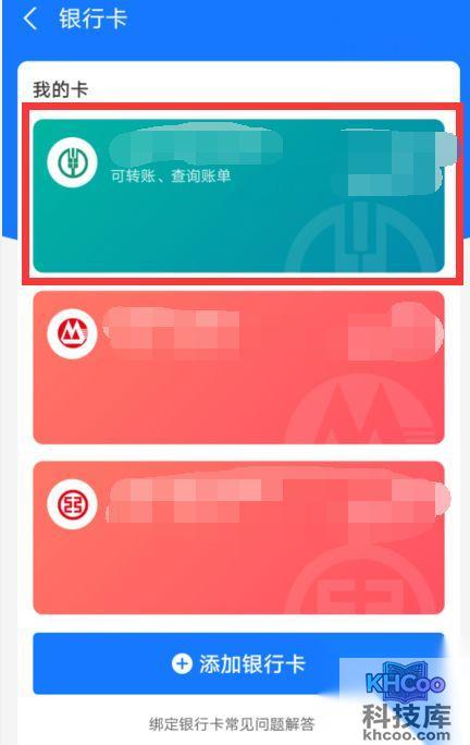 2、选择银行卡并点击进入,