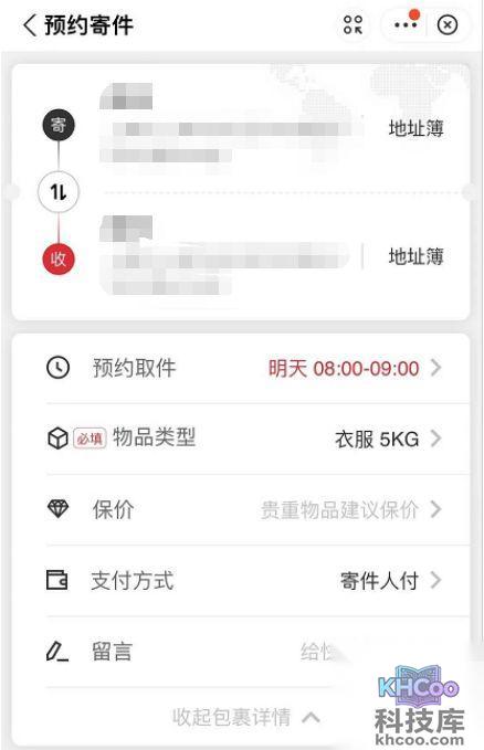 3、填写相关的寄件人和收件人的信息,选好预约上门时间、保价等一系列的操作。