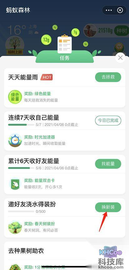 3.需要邀请好友浇水,得到500g能量后就可以获得新装扮了