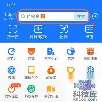 1、打开手机上的支付宝app,登录个人支付宝账号,在首页点击上方的【 搜索 】;