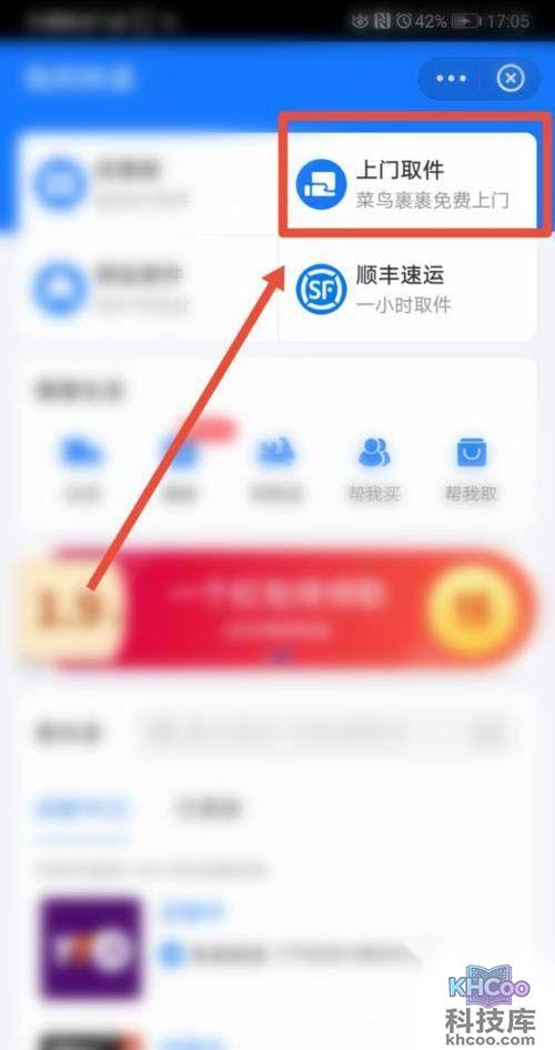 3、接着再在我的快递页面,点击进入上门取件功能;