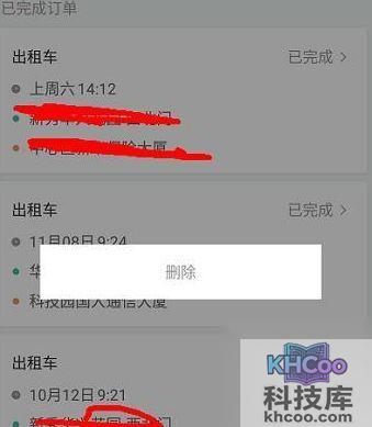 支付宝滴滴打车订单删除方法