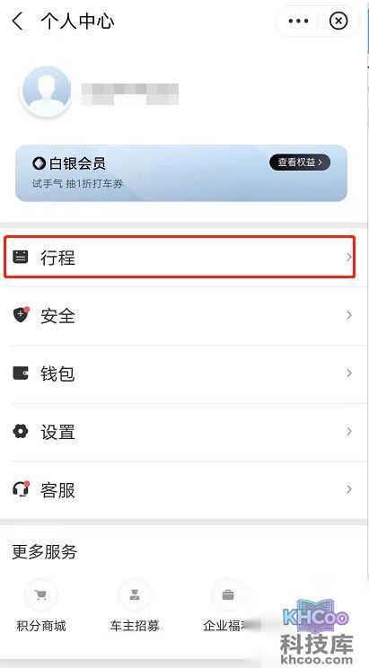 3、进入个人中心页面后,点击行程。