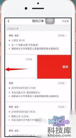 6、而苹果用户则需要左滑订单页面进行删除。