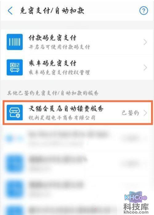3、点击【免密支付/自动扣款】。
