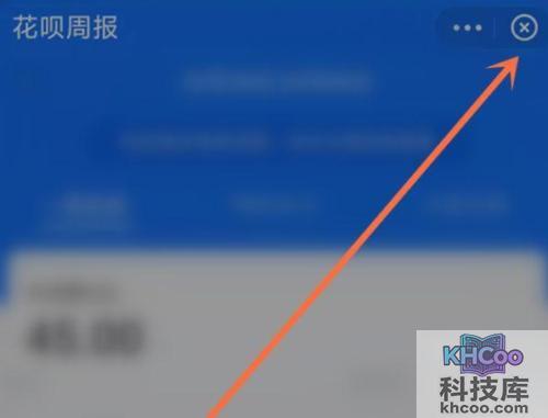 1、打开支付宝,进入花呗周报界面,点击右上角 三点 。