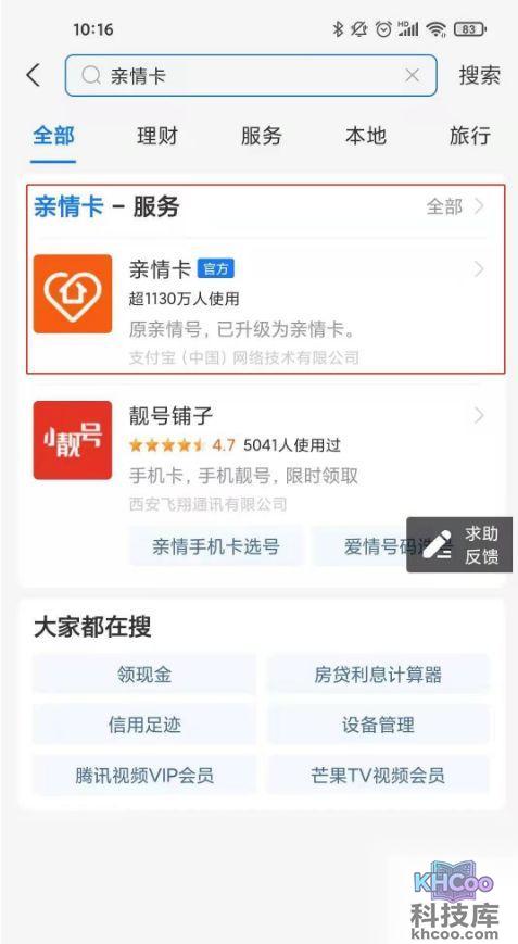 2、输入并点击亲情卡。