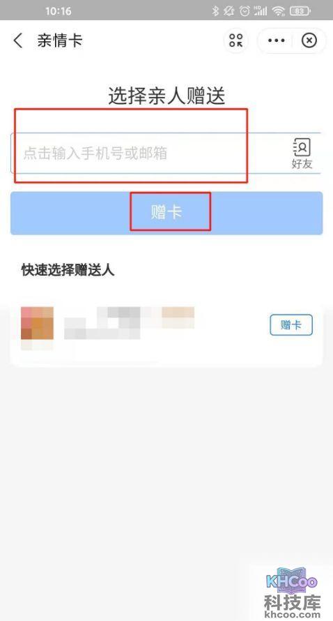 3、点击赠送亲情卡。