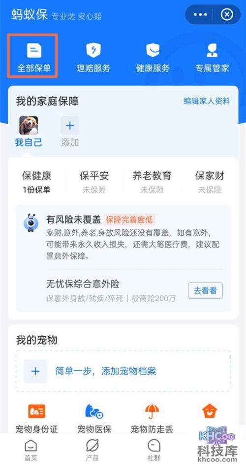 3、在全部保单里点击万能保。