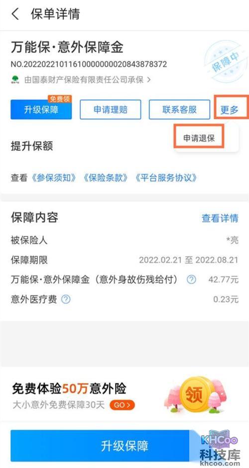 5、点击更多,开启申请退保后,选择原因退保即可。