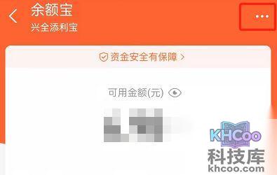 2、点击余额宝页面右上方三个点。