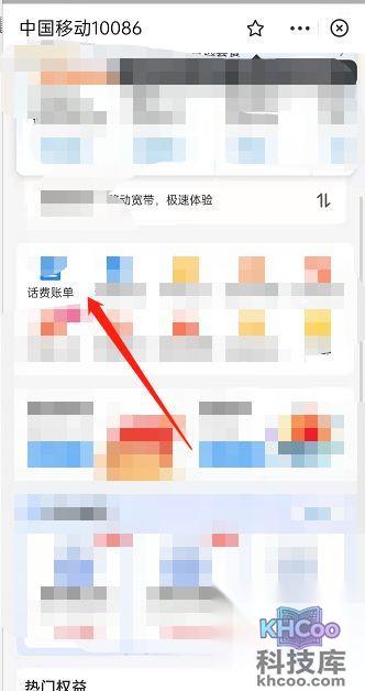 2、点击【话费账单】。