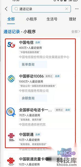 1、在支付宝 搜索 通话记录,选择自己的手机运营商。