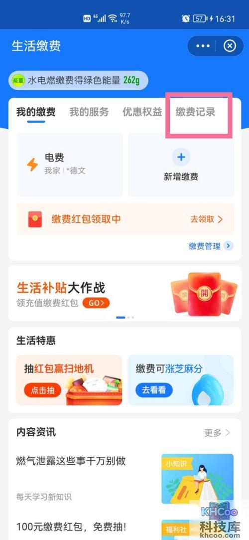 2、点击 缴费记录 。