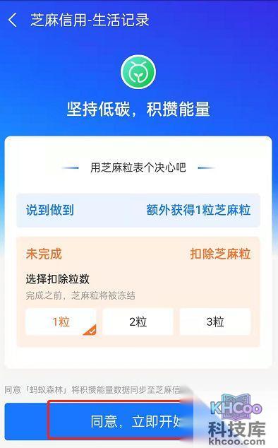 7、可以设置没有完成任务时被扣除的芝麻粒数,点击同意,立即开始即可。