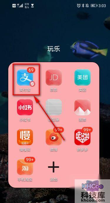 1、 解锁手机,点击支付宝软件。