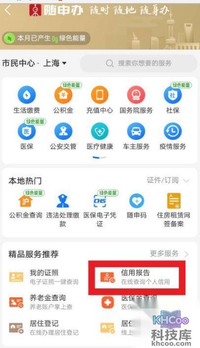 3、本人授权与上海市大数据中心互认后,点击“信用报告”,如图红色文本框: