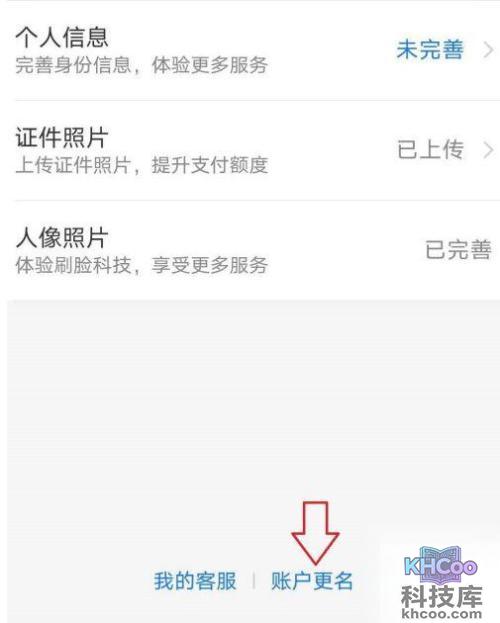 4、右侧显示【灰色】的是已完成认证的,选择下方的【账户更名】。