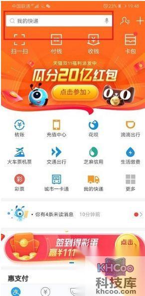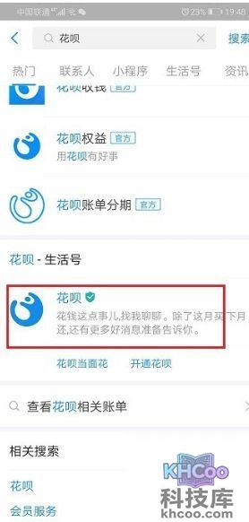 1、点击打开支付宝,然后使用 搜索 框来搜索“花呗”。