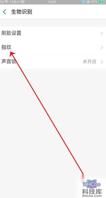 5、然后在生物识别页面上点击打开“指纹”。